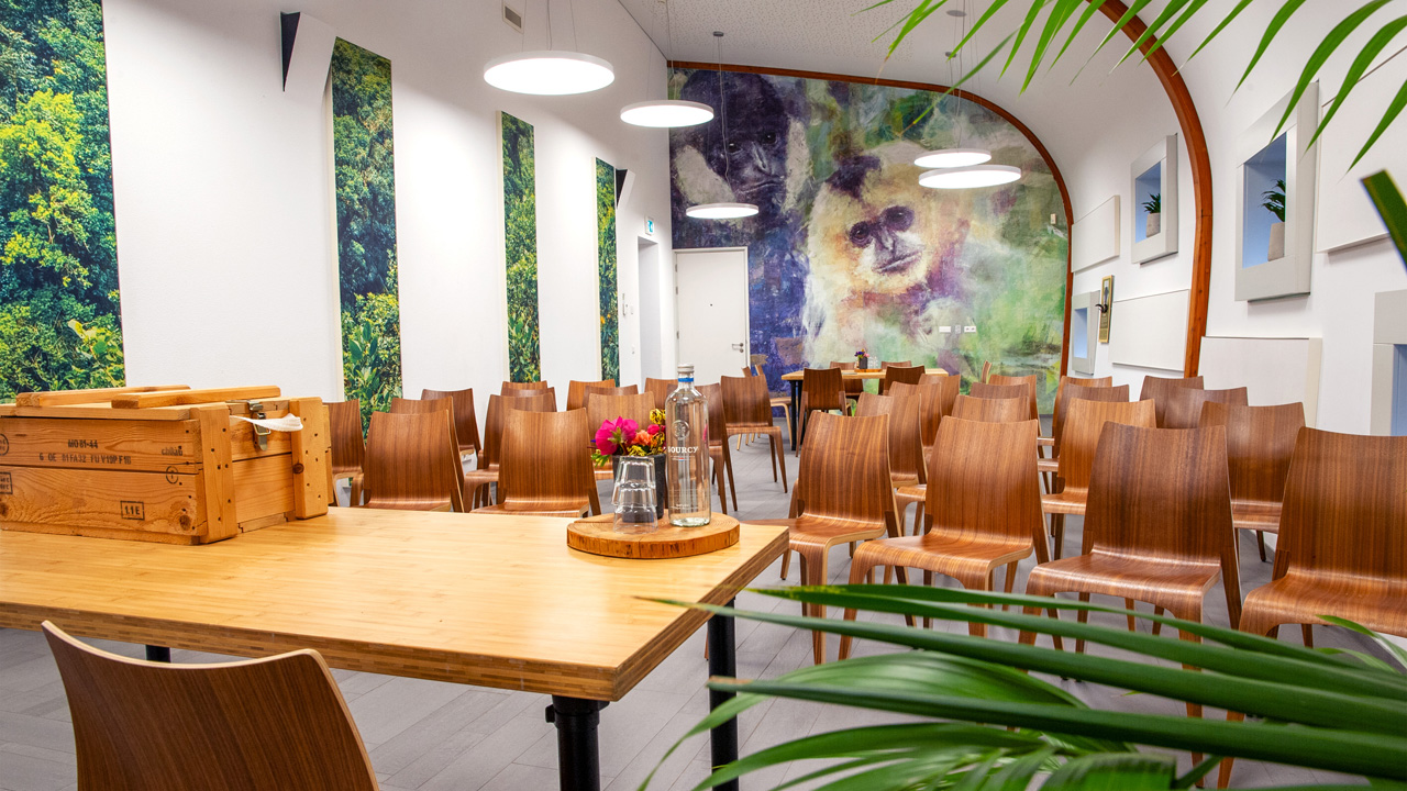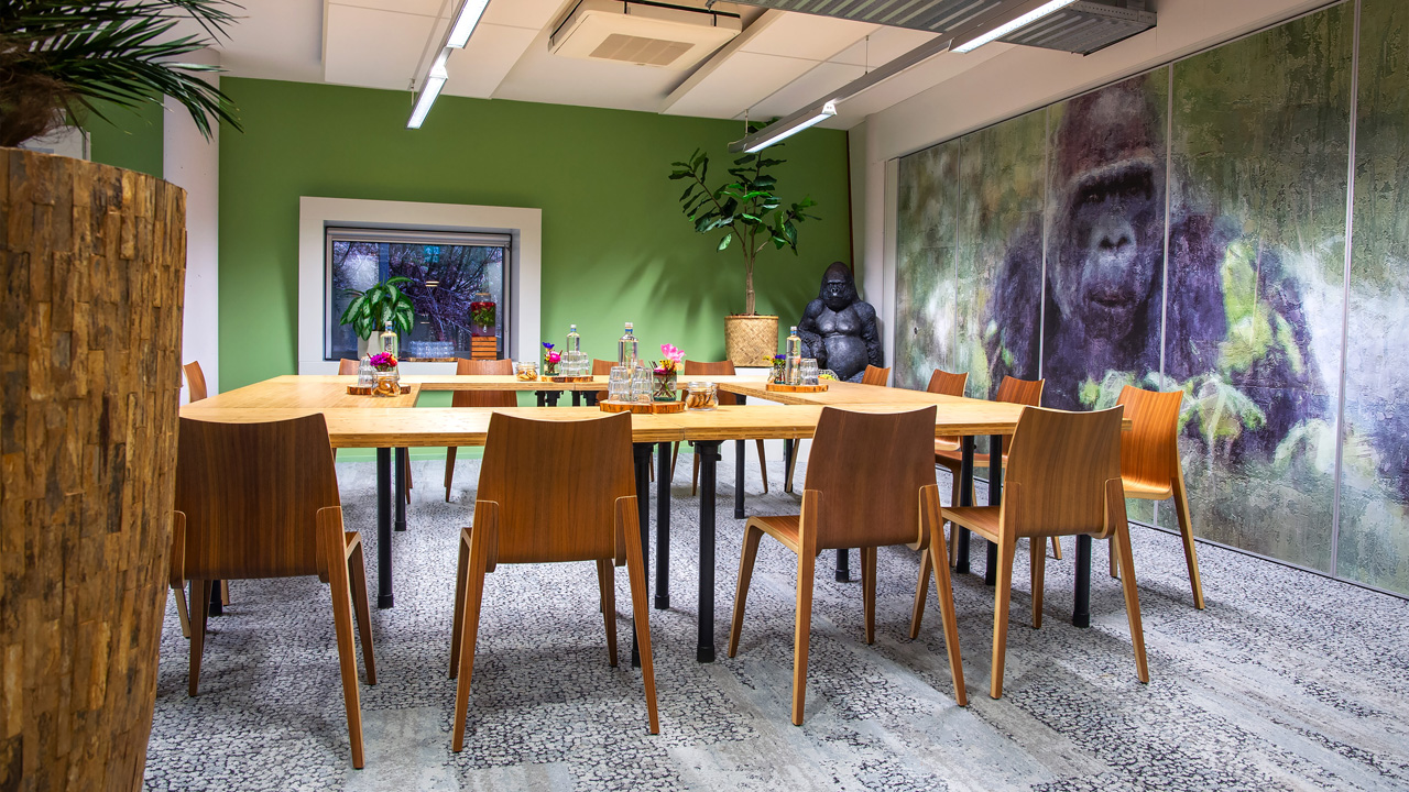 Bovendien is dit een ideale plek om een bijeenkomst te combineren met een bezoek aan de apen of om vanaf het terras mee te genieten met de gorilla voederpresentatie.