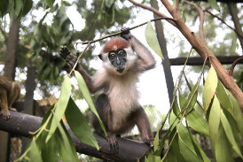 Het TCRC vangt veel weeschimpansees op. Er komen echter ook veel meerkatweesjes, waarvan de moeder veelal door stroperij om het leven is gebracht. Aangezien er geen apart meerkattencentrum in de omgeving bestaat, heeft Tchimpunga besloten deze meerkatten op te vangen. Hier zitten ook wel eens roodkruinmangabeys (Cercocebus torquatus) tussen, een soort die wij ook in Apenheul hebben.